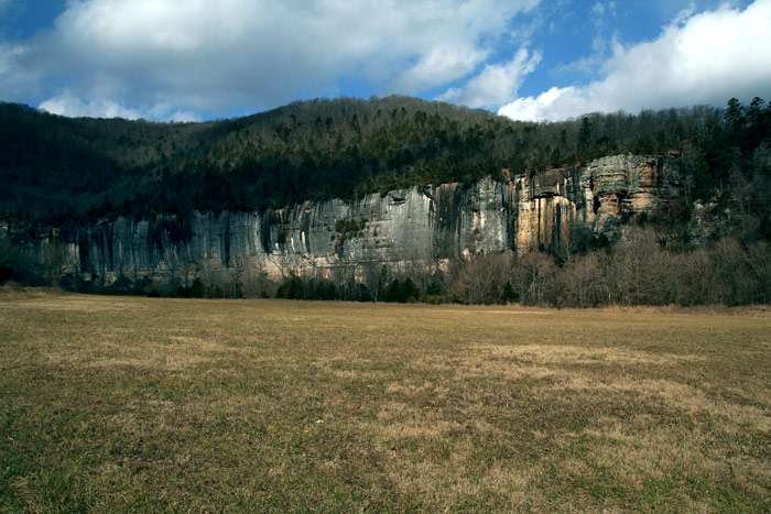 where the trail starts; looking across the river at Roark Bluff.